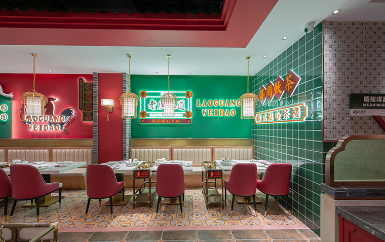 打破點X德過于復古,陳舊的氣息,打造色彩更加鮮明,更接地氣的廣式老茶樓。